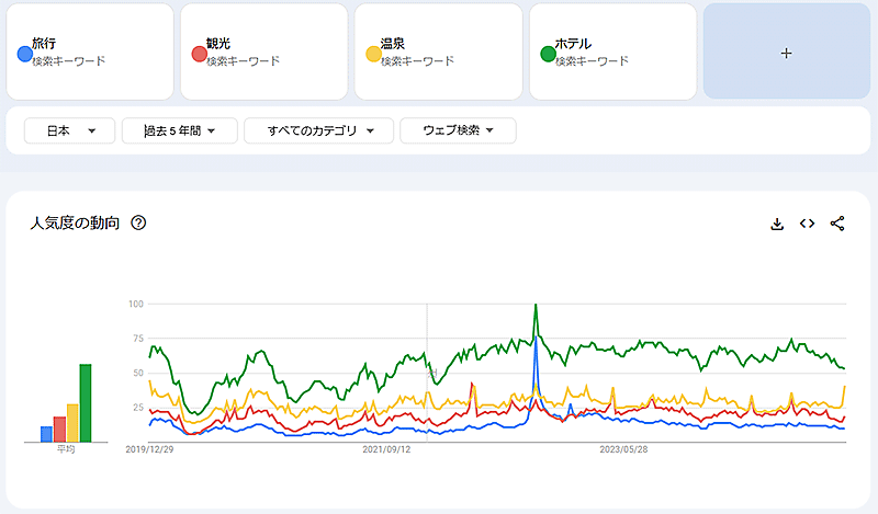 「Googleトレンド」で旅行関連の5年の指標を見てみると、2022年10月の全国旅行支援をピークに2023年以降は微減で推移しています。2024年より3連休以上が3回少ない2025年は、レジャーの消費も抑えられる動きが出てくるのではないでしょうか。