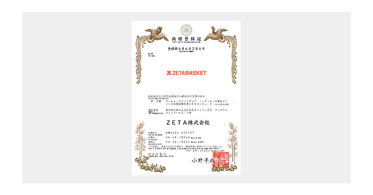 ZETAは、ECキュレーションエンジン「ZETA BASKET(ゼータバスケット)」の商標登録を行った。