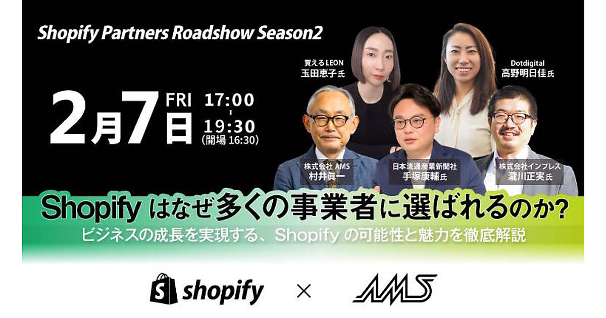 Shopify JapanとEC運用の業務を一気通貫でサポートするAMSは2月7日(金)、トークイベント「Shopify Partner Roadshow」を実施する。「Shopify」を活用することで実現する新しいECの可能性について、多くのEC事業者の役に立つ情報を提供する。
