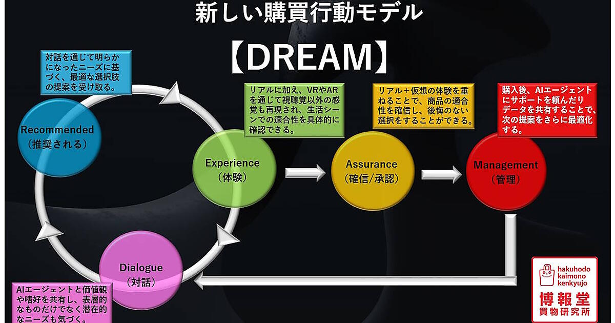 博報堂のシンクタンクである博報堂買物研究所は、生活者の仕事や日常生活をサポートするために設計されたAIエージェントと共に進化する新しい購買行動モデル「DREAM」を発表した。