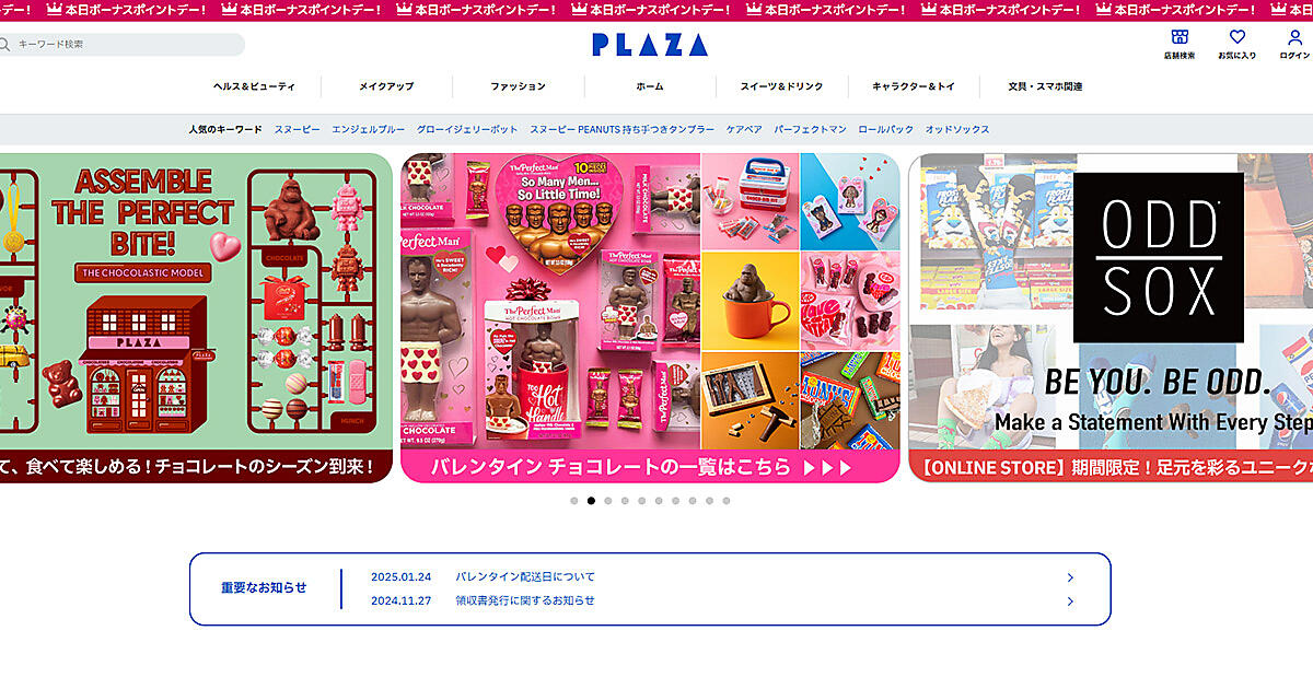 プラザスタイルの公式ECサイト「PLAZA オンラインストア」は、コスメ、ファッション、文具、菓子など世界中からセレクトしたアイテムを販売しており、ユーザーに「HEARTS UP!」な買い物体験の提供をめざしている。