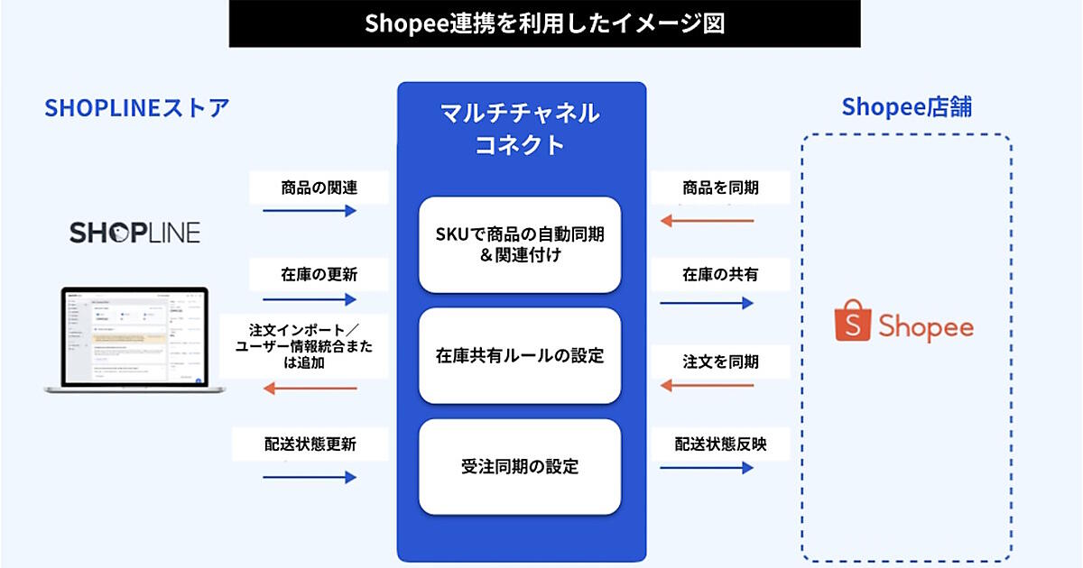 「SHOPLINE」を利用している事業者は、「SHOPLINE」アプリの「マルチチャネルコネクト」を利用して、複数の「Shopee」ストアを連携できるようになる。これにより、「SHOPLINE」と他の販売チャネルの在庫を一括管理をできる。
