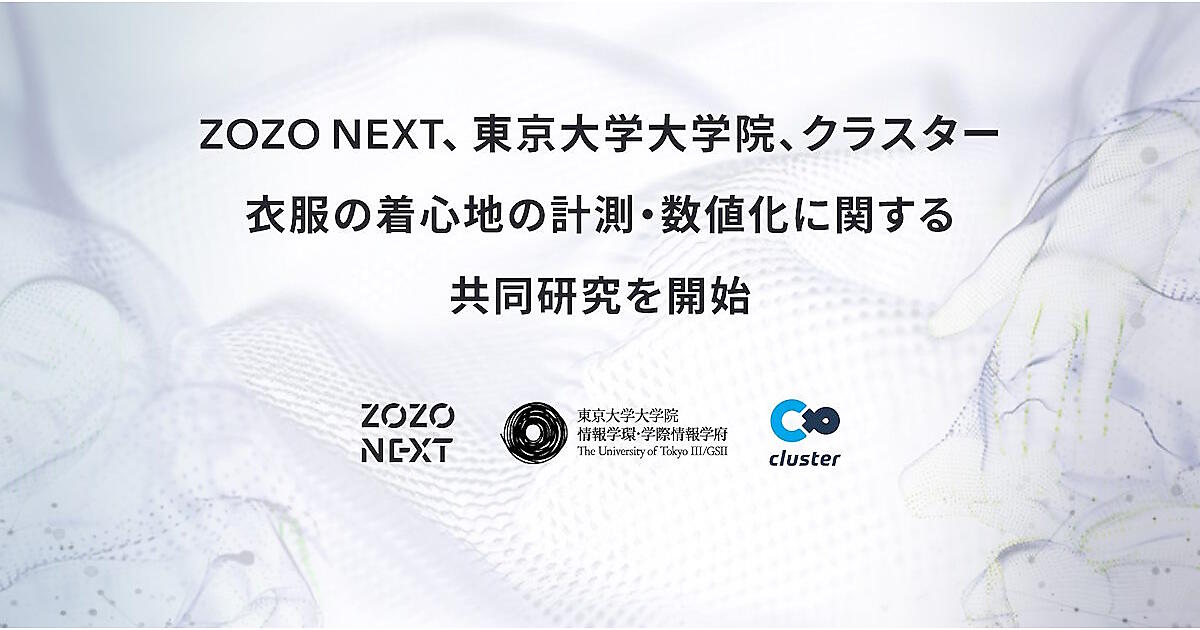 ZOZOグループはこのほど、東京大学大学院、メタバースプラットフォームを展開するクラスターの研究機関「クラスターメタバース研究所」と、衣服の着心地の計測・数値化に関する共同研究を2024年12月から開始したと発表した。研究を通じて、衣服の着心地を計測・数値化するための機械学習および情報入出力手法の知見を獲得する。