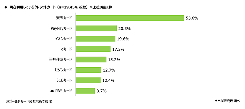 利用しているクレジットカード上位は「楽天」「PayPay」「イオン」
