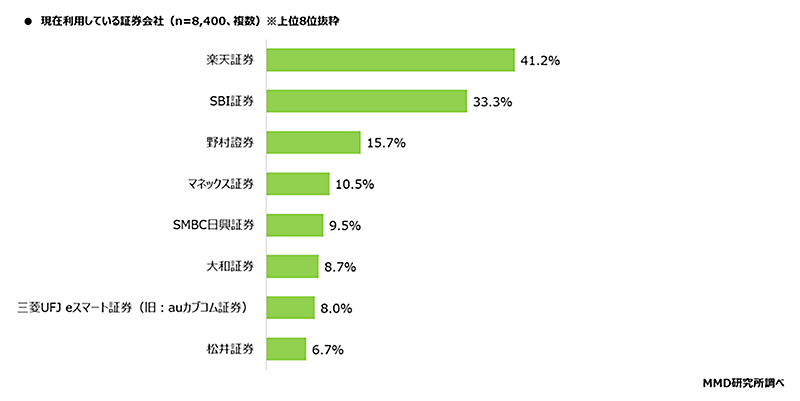 利用している証券会社の上位は「楽天」「SBI」「野村」