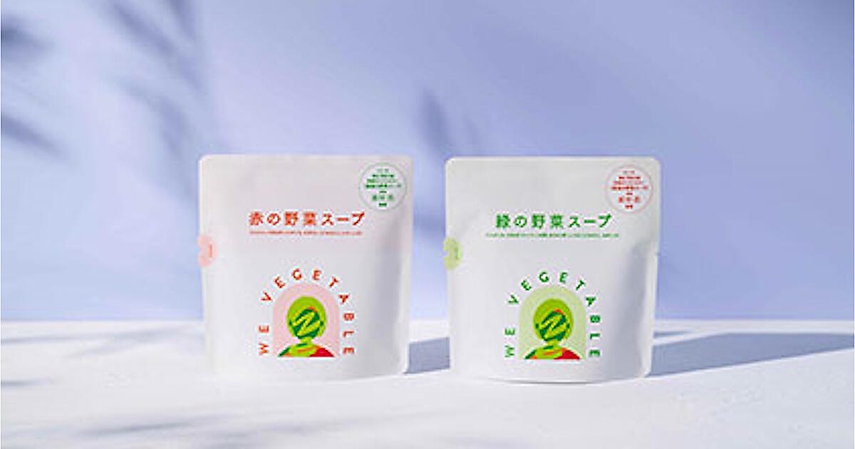第1弾商品はスープ2アイテムを展開する。「赤の野菜スープ」はにんじんやかぼちゃ、とうもろこし、トマトなど7種類の野菜を、「緑の野菜スープ」はキャベツや小松菜、ホウレンソウ、ねぎなど9種類の野菜をそれぞれ使用した。定期購入で取り扱い、初回は16食入で税込価格4980円(送料880円)。