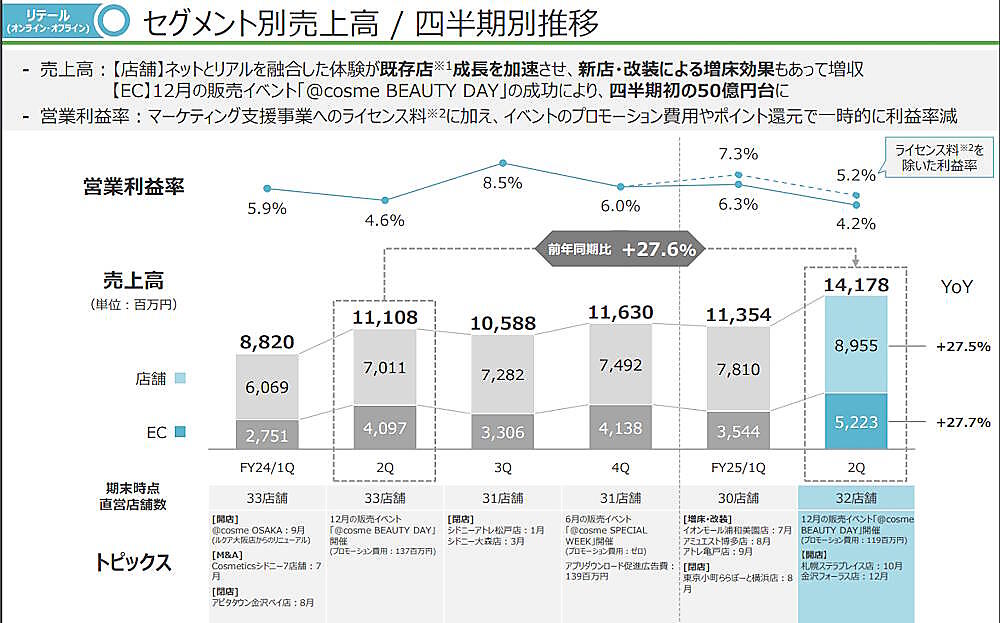 アイスタイルは2024年8月に発表した4~5か年の中期事業方針で、リテール事業全体で約800億円の売上規模をめざしている。このうち、EC売上高は約300億円を想定している。
