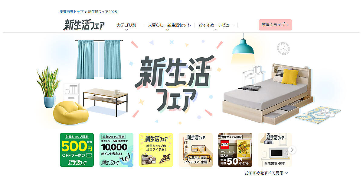 楽天グループは「楽天市場」内に、特集ページ「新生活フェア 2025」を4月26日(土)まで、「入園入学準備特集」を4月30日(水)まで公開。テーマに沿った家具、防災グッズ、アパレルなどを紹介している。