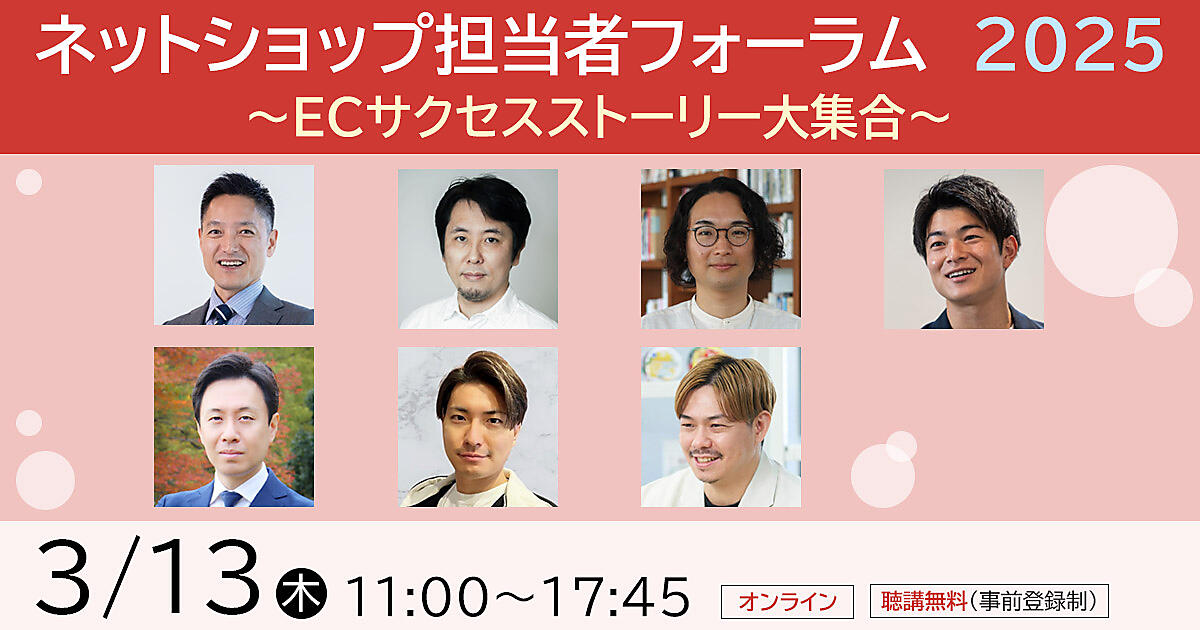 ネットショップ担当者フォーラムでは3/13(木)に、オンライン配信のECイベント「ネットショップ担当者フォーラム 2025 ~ECサクセスストーリー大集合~」を配信します。