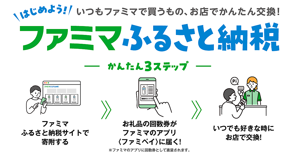 ファミリーマートは3月25日から、独自のふるさと納税サービス「ファミマふるさと納税」を開始する。1000円から寄付可能で、返礼品は全国のファミリーマートで取り扱う商品20種類から始める。寄付後に全国の店頭ですぐに引き換えられるのが特長。