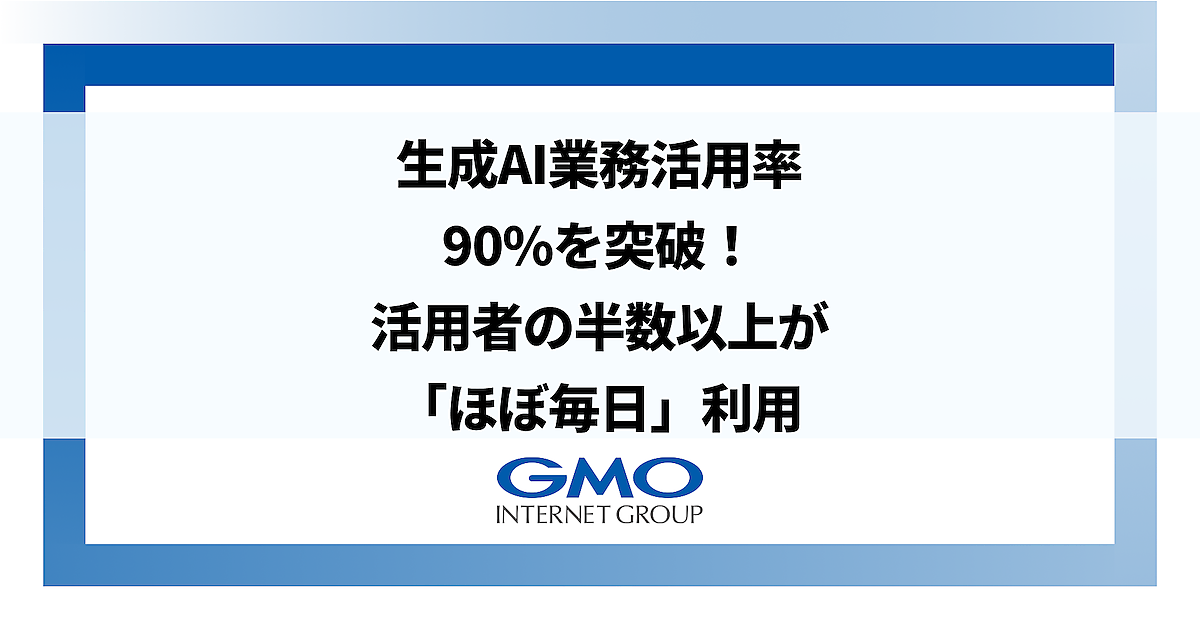 GMOインターネットグループが3月28日に公表したグループ社内の生成AI活用の実態調査の結果によると、グループ全体の生成AI業務活用率は90.0%に到達、AIを活用しているパートナー(従業員)の過半数が「ほぼ毎日」活用していることがわかった。