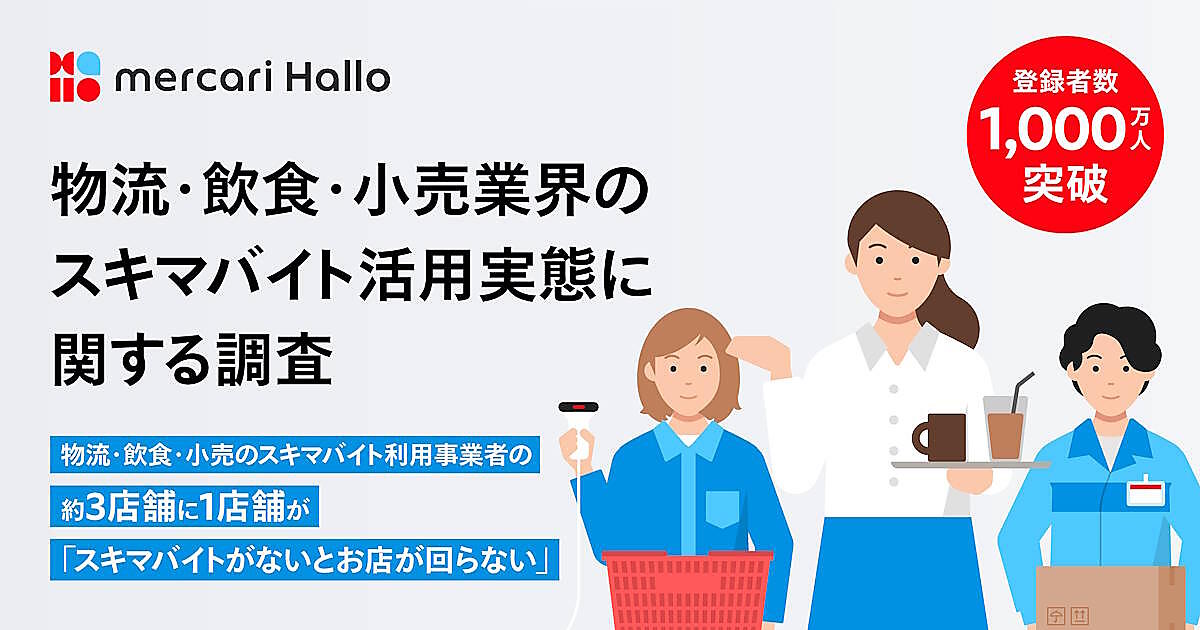 メルカリが実施した「物流・飲食・小売業界のスキマバイト活用実態」に関する調査によると、8割超の事業者が顕著な人手不足を実感していることがわかった。