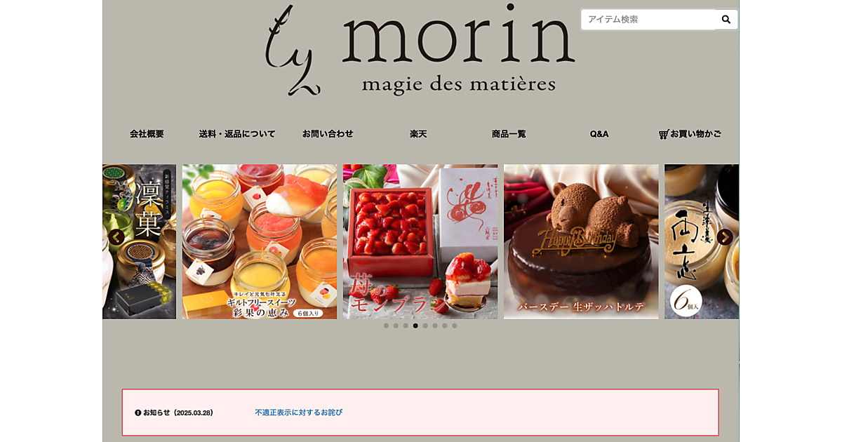 農林水産省の中国四国農政局は3月28日、スイーツEC「Morin」などを運営するモリンホールディングスに対し、菓子類27商品において原料原産地名や原材料名に不適正な表示があったとして、食品表示法に基づき表示是正などの指示を出した。
