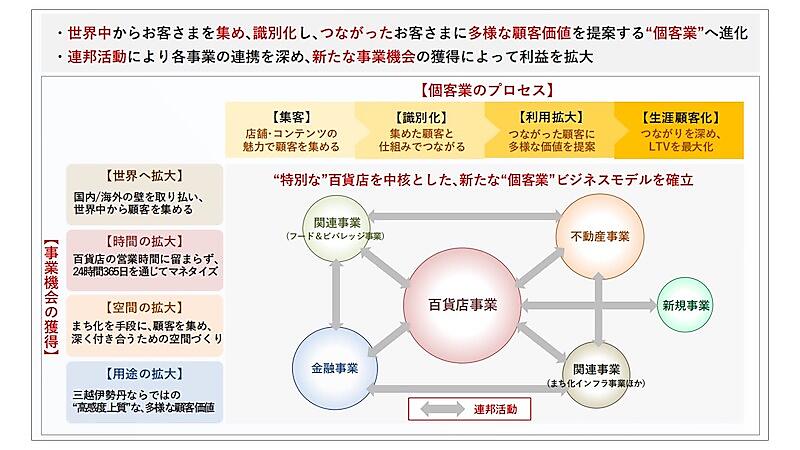 三越伊勢丹グループは2024年11月に2025年〜2030年の中期経営計画を策定。「お客さまの暮らしを豊かにする、特別な百貨店を中核とした小売グループ」の実現に向けて、ビジネスモデルを“館業”から“個客業”へ変革を進めている。