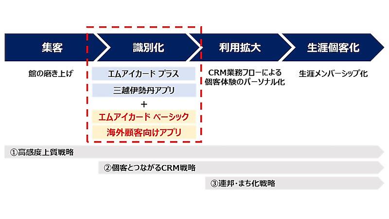 「エムアイカード ベーシック」「MITSUKOSHI ISETAN JAPAN」は、「識別化」の施策の一環となる。従来から発行しているクレジットカード「エムアイカード プラス」や三越伊勢丹アプリでの識別化は堅調に推移しており、新サービス提供でさらなる識別化の規模を広げる。「識別化」をした上で、さらに三越伊勢丹グループの百貨店を中心に利用を促進し、顧客ごとに応じたパーソナルな体験の提供から生涯個客化をめざす。