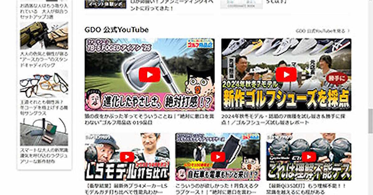 昨年からは自社通販サイトの中で「ユーチューブ」のコーナーを開設。公開している動画としては、秋葉原で運営しているセレクトショップ型の実店舗「GDO Select」を舞台に、店長役のスタッフがバイヤーと掛け合い形式で商品を紹介していく「“絶対に悪口を言わない”ゴルフ用品店」をはじめ、話題のゴルフクラブなどについて忖度(そんたく)なしでトークバラエティ形式で紹介する「ミタナラバコウタロウ」、また、同社のそれぞれのジャンルに詳しいスタッフが商品を試してレポートする内容などさまざまある。