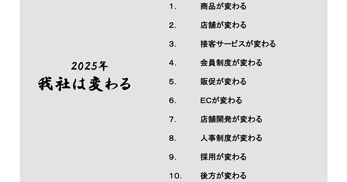 タカキューでは2022年2月期会計年度末に債務超過に陥り、上場廃止基準に係る猶予期間入り銘柄となっていた。2025年2月期会計年度末に純資産が10億7500百万円となり、上場維持基準(純資産基準)に適合する見込みに。事業再生へ向けて「2025年我社は変わる」をスローガンに掲げ、EC施策の強化など再成長に向けた取り組みを進めていく。