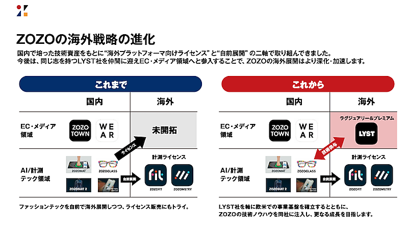 ZOZOはLYST社を子会社化することで、海外展開で未開拓となっていたEC・メディア領域へ進出する。