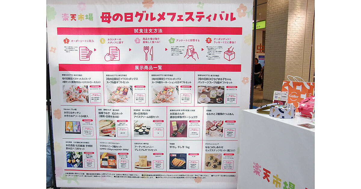 楽天グループ(楽天)は、4月21日(月)18時00分まで神奈川県・横浜にある「MARK IS みなとみらい(マークイズみなとみらい)」で、母の日ポップアップイベント「母の日グルメフェスティバル」を実施しています。実施の背景や狙いなどをイベント担当者に聞きました。