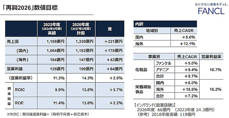 ファンケル中計、売上高1330億円めざす