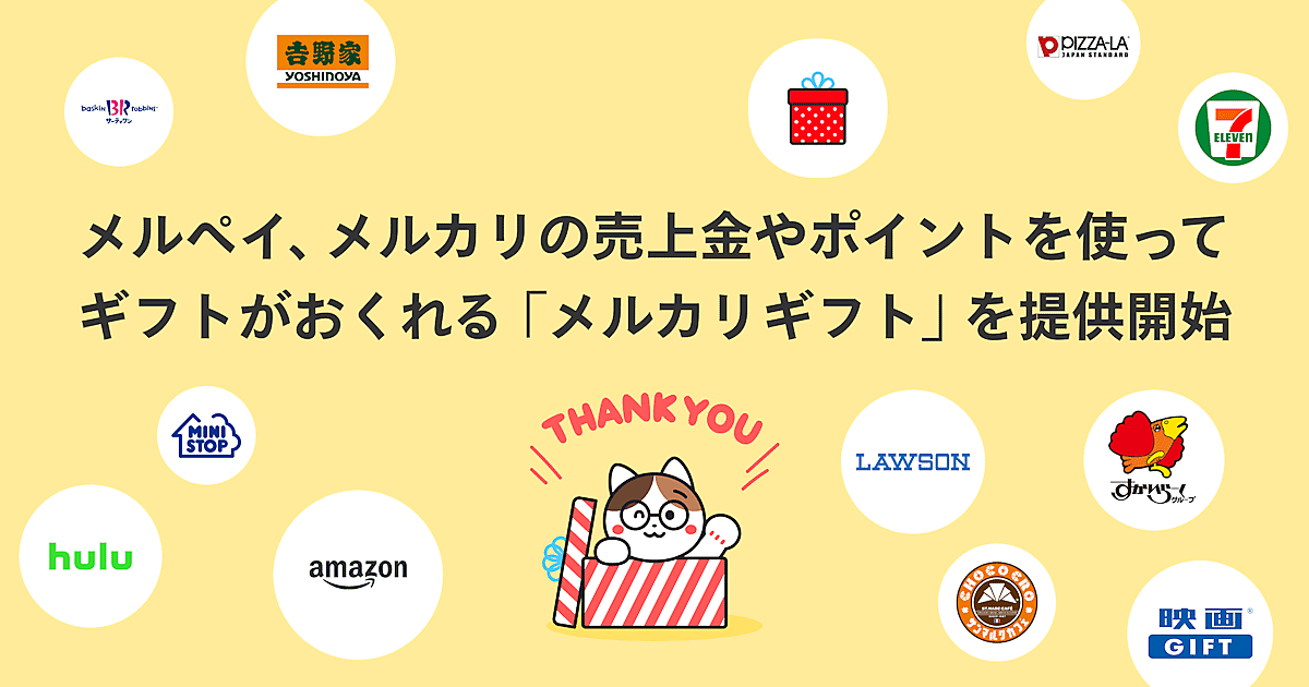 メルペイはギフティと連携し、4月22日からメルカリの売上金(メルペイ残高)やポイントなどでギフトを購入し、贈ることができる「メルカリギフト」の提供を開始した。