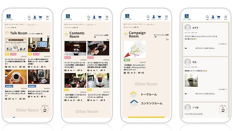 「キーコーヒーファンコミュニティ」は会員制のコミュニティサイト。ユーザー同士の会話、キーコーヒーの担当者と気軽に交流ができるトークルーム機能などを用意している。日々のコーヒーライフをユーザー同士で共有し合える。そのほか、コーヒーの豆知識や作り方なども発信し、コーヒーの魅力を発信していく。