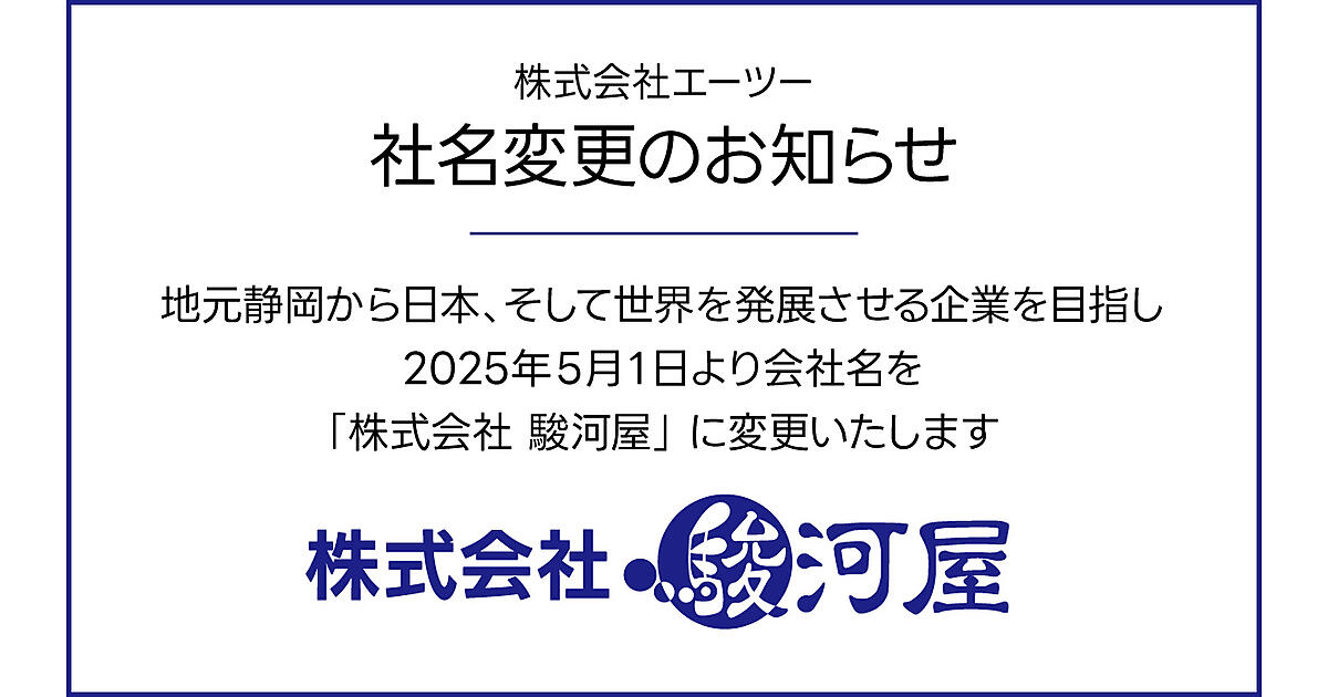 リユース商品などを扱う「駿河屋」を運営するエーツーは5月1日、社名を「株式会社駿河屋」に変更した。
