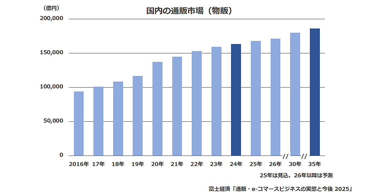 通販・EC市場は2035年に18.6兆円へ、ECモール市場は13.1兆円に拡大【富士経済の予測】