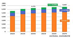 食品・生鮮品の2024年市場は前年比5.2%増の2兆7996億円、2035年は2024年比で28.0%増の3兆5840億円と予測した。