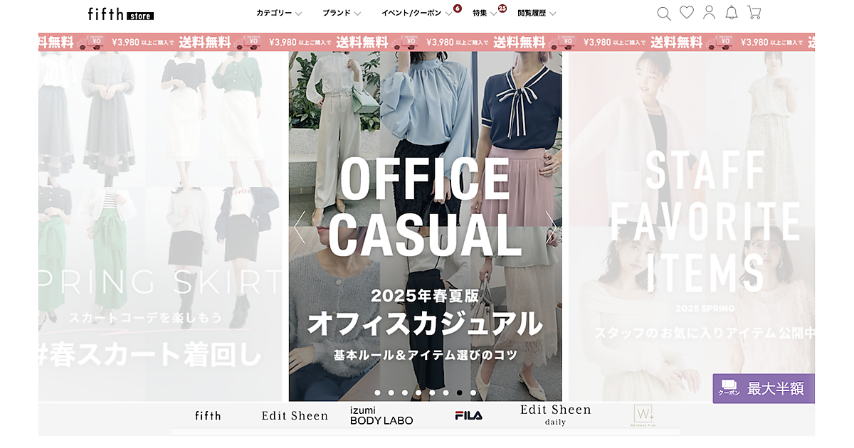 「fifth」は2013年のECサイト開設。ECビジネスとECソリューションを展開するアパレルEC企業CODESHARE(コードシェア)が立ち上げ、2023年4月にGSIクレオスが設立した子会社SHAREが事業を買収していた。
