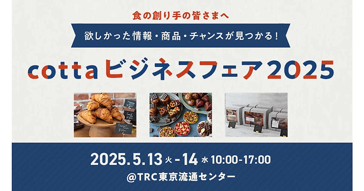 製菓・製パン材料やレシピなど2万点以上の商品を取り扱うECサイト「cotta」を運営するcottaは、自社初のBtoB向け大規模展示会「cottaビジネスフェア2025」を5月13日(火)・14日(水)の2日間で実施する。