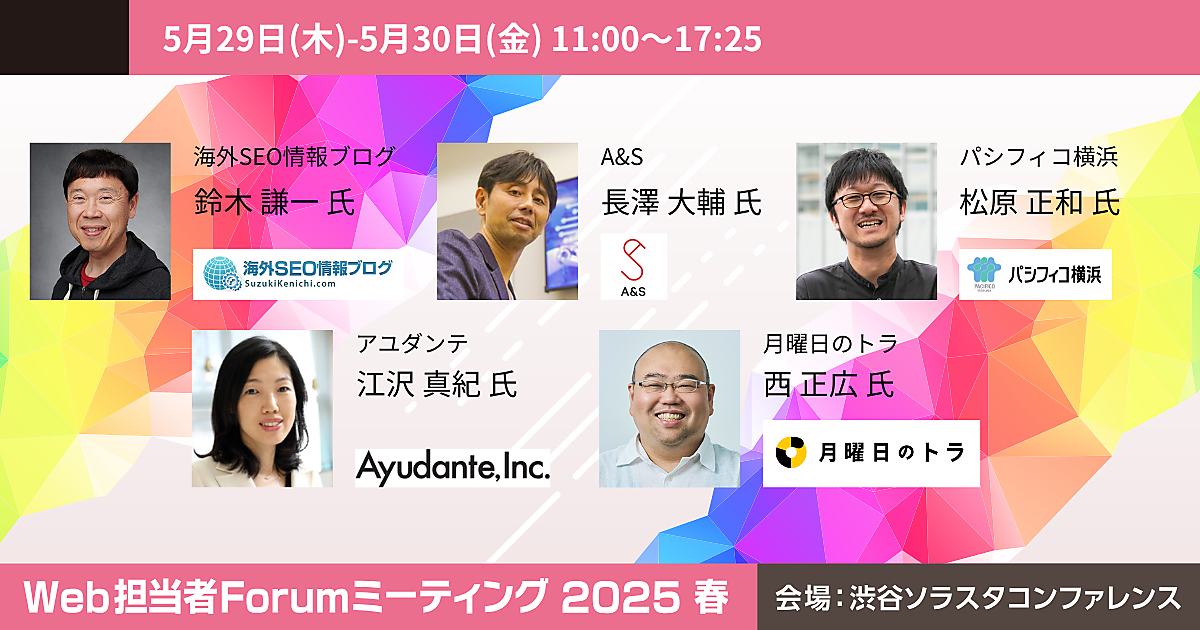 X、コクヨ、日経新聞、三井住友海上などが登壇する「Web担当者Forum ミーティング 2025 春」を5月29日(木)、5月30日(金)に開催します。今回は、リアル(東京・渋谷)とオンラインでのハイブリッド形式で実施します。