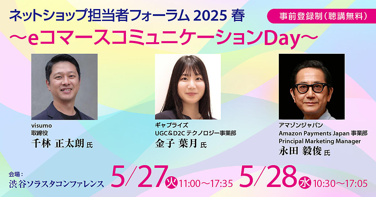 5月27日(火)+28日(水)に大型オフラインECイベント「ネットショップ担当者フォーラム 2025 春 ~eコマース コミュニケーションDay~」を東京・渋谷ソラスタコンファレンスでリアル開催。良品計画、ヤマダデンキ、TSI、UA、食文化、オイシックス・ラ・大地など著名企業の実践的事例や知見を学べるセミナーを多数用意しています。さまざまなテーマのセッションは、すべて無料!(事前登録制、ECを実施している企業のみの限定イベントです)。まだお申し込みをしていない方のために、編集部おすすめの講演の見どころをご紹介します。