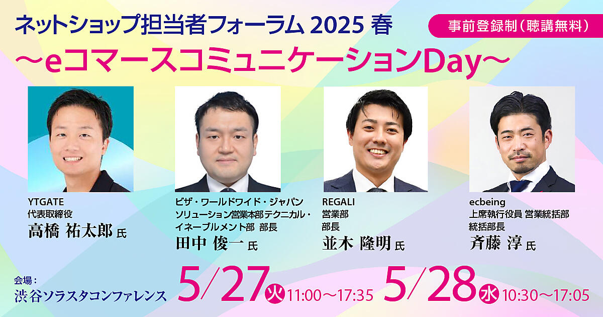 5月27日(火)+28日(水)に大型オフラインECイベント「ネットショップ担当者フォーラム 2025 春 ~eコマース コミュニケーションDay~」を東京・渋谷ソラスタコンファレンスでリアル開催。良品計画、ヤマダデンキ、TSI、UA、食文化、オイシックス・ラ・大地など著名企業の実践的事例や知見を学べるセミナーを多数用意しています。さまざまなテーマのセッションは、すべて無料!(事前登録制、ECを実施している企業のみの限定イベントです)。まだお申し込みをしていない方のために、編集部おすすめの講演の見どころをご紹介します。