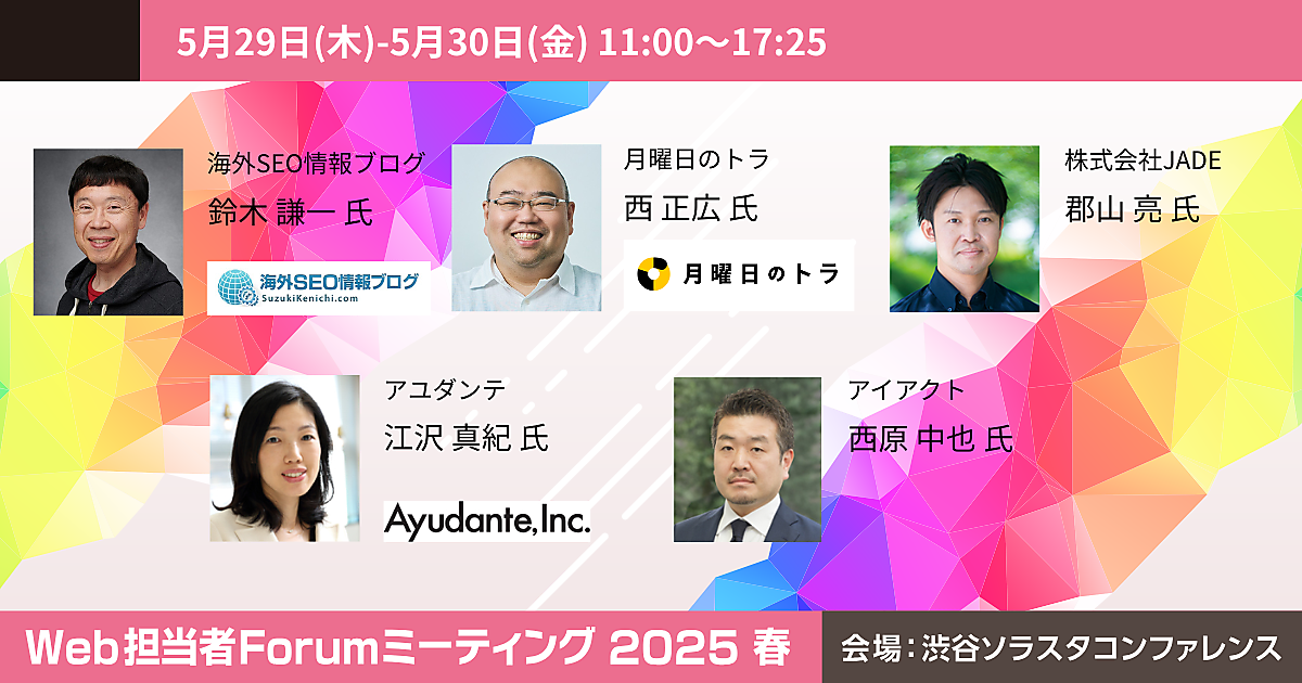X、コクヨ、日経新聞、三井住友海上などが登壇する「Web担当者Forum ミーティング 2025 春」を5月29日(木)、5月30日(金)に開催します。今回は、リアル(東京・渋谷)とオンラインでのハイブリッド形式で実施します。