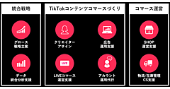 戦略立案から日々の運用・広告・販促支援まで、「TikTok Shop」に必要なさまざまな工程にワンストップで対応。限られた社内リソースでもスピーディかつ効率的に「TikTok Shop」での事業展開を実現できるようにするという。