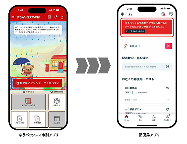 5月30日には、「ゆうパックスマホ割アプリ」から「郵便局アプリ」へアドレス帳(住所録)・作成履歴(送り状履歴)を移行できるようになる。なお、「ゆうパックスマホ割アプリ」側の送り状作成・編集機能などは5月30日に停止する。
