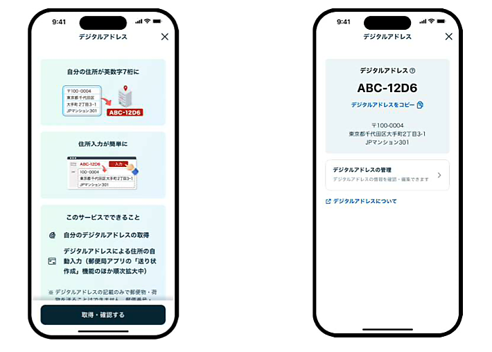 また2024年11月から体験版として提供していた「デジタルアドレス」を、5月26日から正式版として本格的に展開する。「デジタルアドレス」とは、住所を7桁の英数字で伝えられる新しいサービス。住所入力の手間や各種サービスにおける住所情報の取り扱いの利便性向上をめざして開発した。