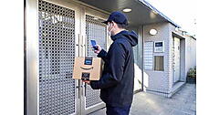 オートロックマンションへの出入りには、不動産管理向けシステムを取り扱うライナフの「スマート置き配」のシステムを活用。「スマート置き配」は、スマートロック「NinjaEntrance」を用いて、オートロック付きマンションの共用エントランスの鍵をデジタル化している。認証された配達員がオートロックを解錠し、利用者が指定した場所に配達員が荷物を届ける。解錠履歴はすべて記録される。