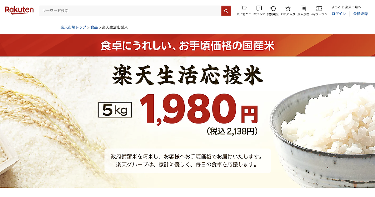 楽天グループは5月29日、米の品不足や価格高騰による消費者の米離れを防ぐ農林水産省の方針に賛同、自社グループの販売チャネルと配送網などを活用し、政府から購入した備蓄米の販売を始めた。