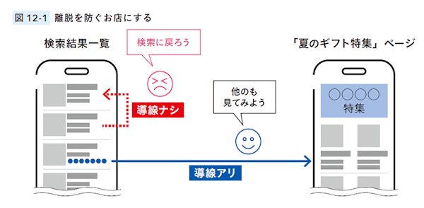 でも、せっかく来てくれたのだから、自分のお店の中をあちこち見てほしいですよね。検索結果への離脱を防ぎ、お店の中を回遊し続けてもらうにはどうしたらよいでしょうか。「検索結果に戻るよりも探しやすいお店」なら、離脱はもっと防げるはずです。そのためには、検索しなくても先回りして色々提案してくれるお店、気が利いてるお店になる必要があります。