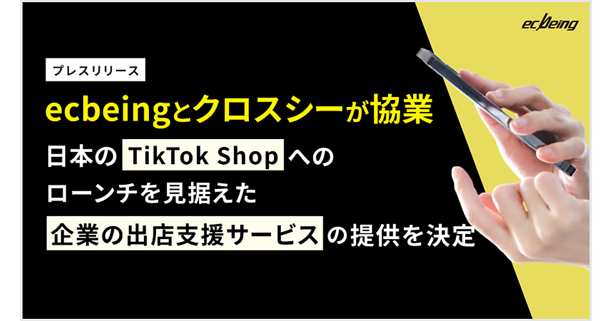 EC構築プラットフォーム「ecbeing」を提供するecbeingは6月10日、資本提携している日中間のクロスボーダービジネス支援を手がけるクロスシーと協業し、日本での「TikTok Shop」のセラーの出店、それに伴うビジネス展開をサポートすると発表した。
