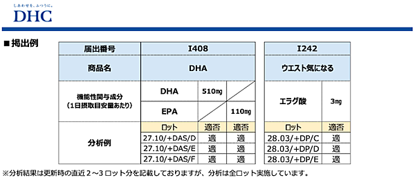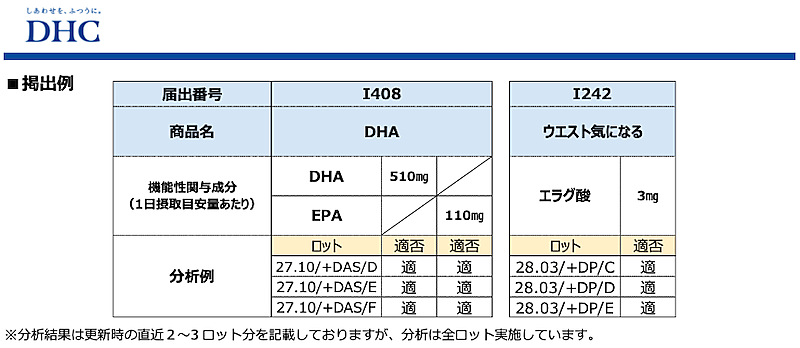 ディーエイチシー(DHC)は6月5日、安心・安全なサプリメントを提供する取り組みの一環として、販売している32種類の機能性表示食品に関する機能性関与成分の分析結果を「DHCオンラインショップ」で公開した。