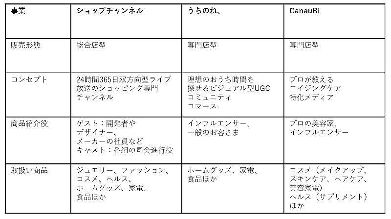 UGCコミュニティ型のコマースは「うちのね、」、エイジングケア特化のメディア型コマースは「CanauBi(カナウビ)」の名称で展開する。「うちのね、」は消費者同士のつながりの構築、「CanauBi」は美容のプロが情報を届けるのが特長という。