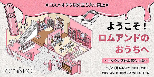 韓国発の人気コスメブランド「rom&nd(ロムアンド)」は、2024年12月23日から2025年1月2日にかけて、東京・原宿でポップアップイベント「ロムアンドのおうち」を実施しました。