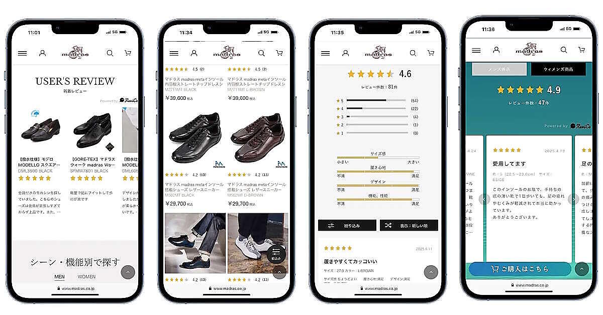 靴の小売大手マドラスは3月から、自社ECサイト「マドラスオンラインショップ」でレビューマーケティング施策を実施、レビュー投稿数が従前の4.7倍に増えたという。