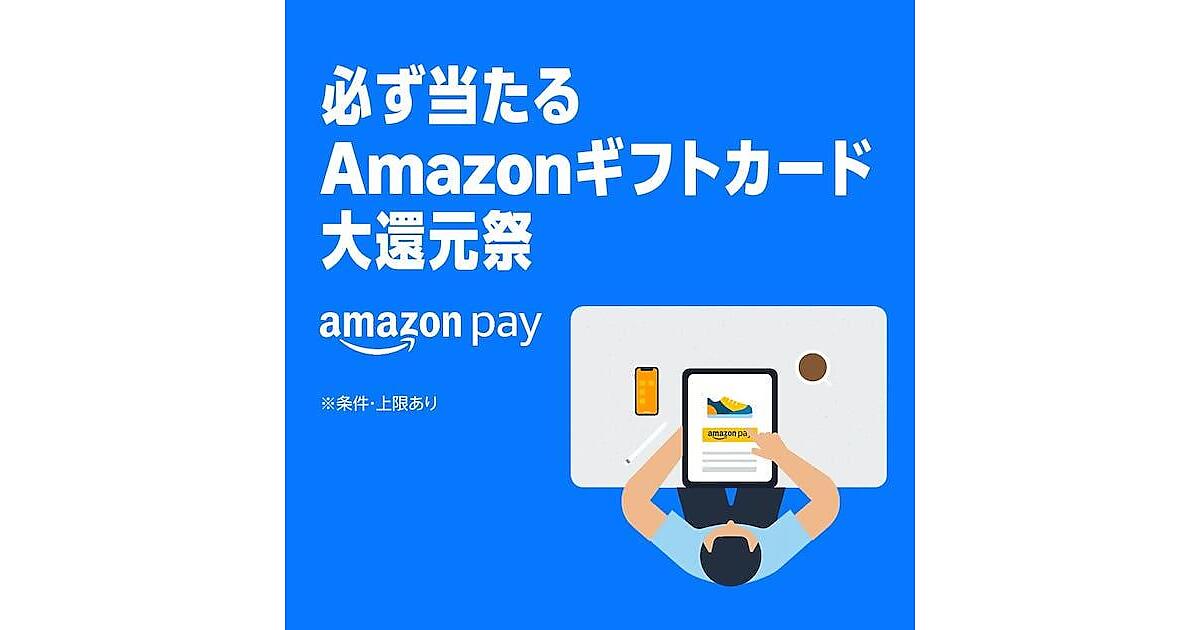 - 「Amazon Pay」を使って対象ECサイトにおいて、1000円以上の買い物で最大10万円相当のAmazonギフトカードを抽選でプレゼント