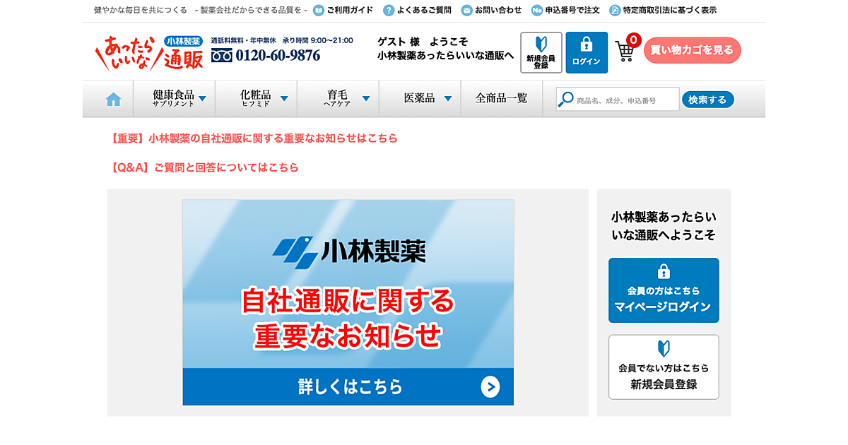 小林製薬は2025年12月、自社が運営するECサイトとコールセンター経由の通販事業から撤退、他社ECサイトや小売店などで販売する体制へと移行する。