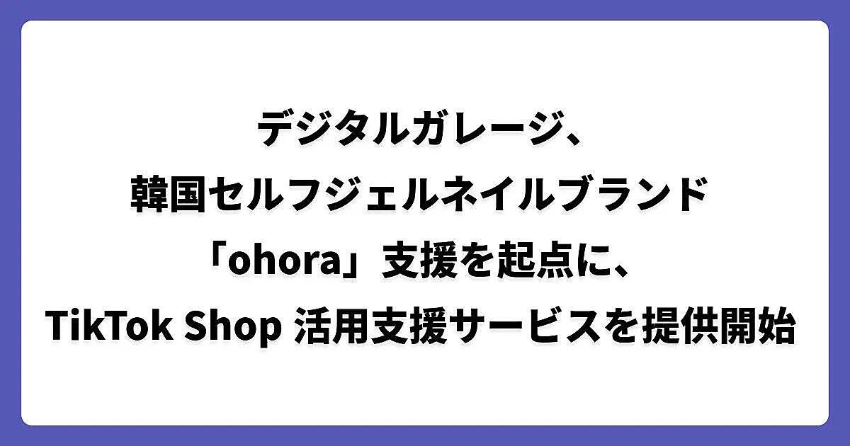 サービス開始の第1弾として、韓国発のセルフジェルネイルブランド「ohora(オホーラ)」の「TikTok Shop」におけるショップの開設と運用支援を開始。デジタルガレージがアカウント申請から初期設定、商品登録、投稿コンテンツの企画・制作、LIVE配信設計支援、注文対応などのオペレーション体制の構築まで、全方位的にサポートしたとしている。