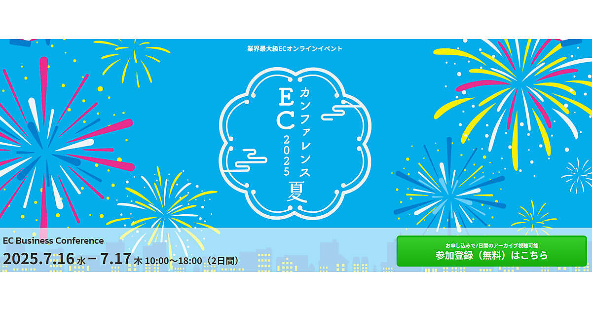 ユニメディア、コマースピック、WUUZYは、ECビジネスの次なる一手につながる戦略やノウハウなどを学ぶ機会となる無料オンラインセミナー「ECカンファレンス2025 Summer」を7月16日(水)、17日(木)の2日間で開催する。